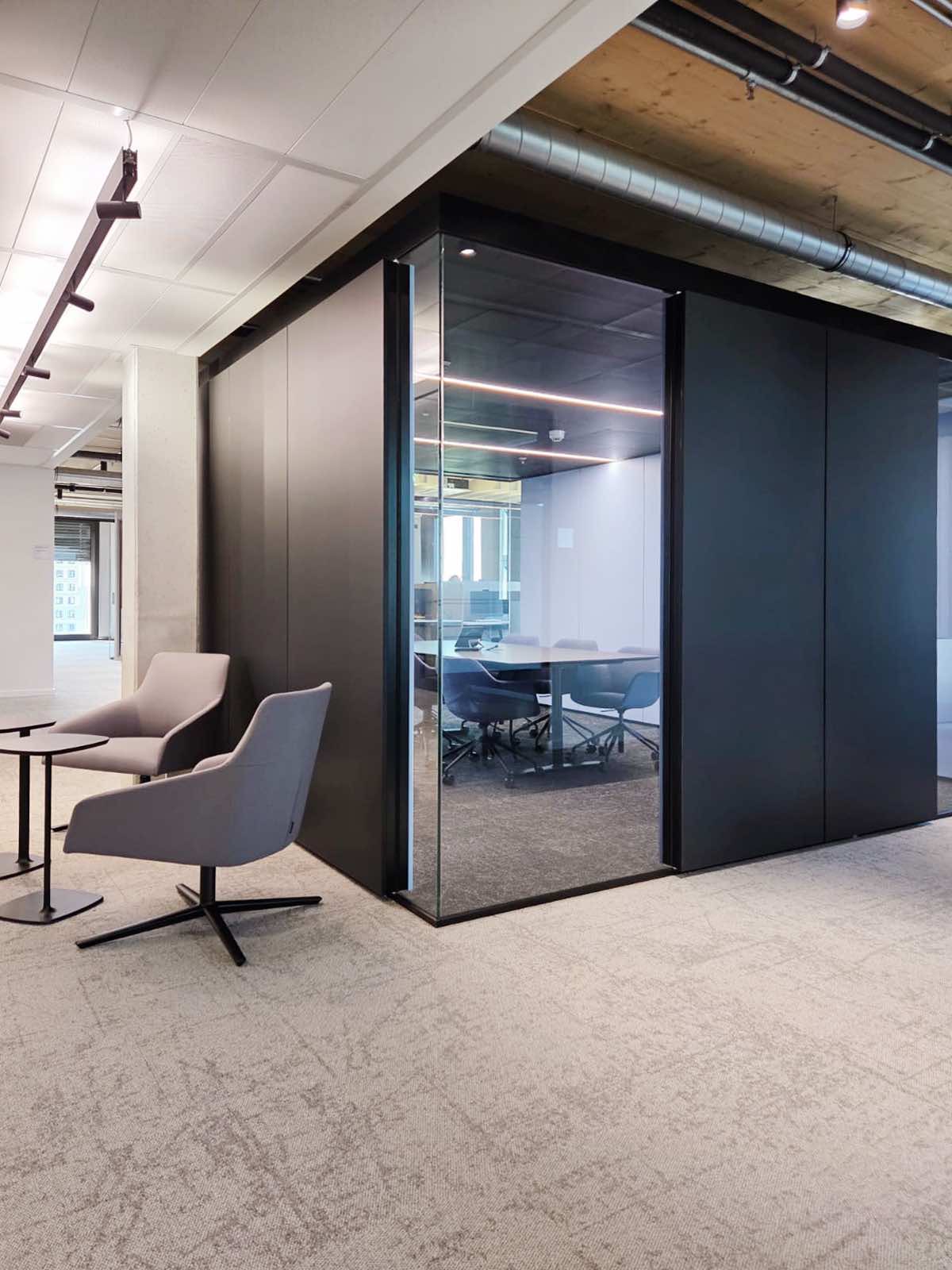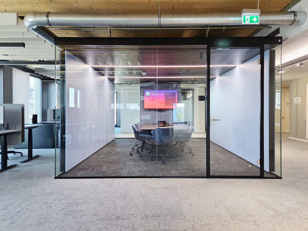 Auf diesem Wege kommt man sehr schnell zu den modularen Raumsystemen von woodtec. Das Raum-in-Raum System vetroCUBE bot sich für die geforderten Rückzugsflächen an. Mit der sehr guten Schalldämmung und leistungsstarken wie leisen Belüftung werden die Räume heute sehr gerne genutzt.